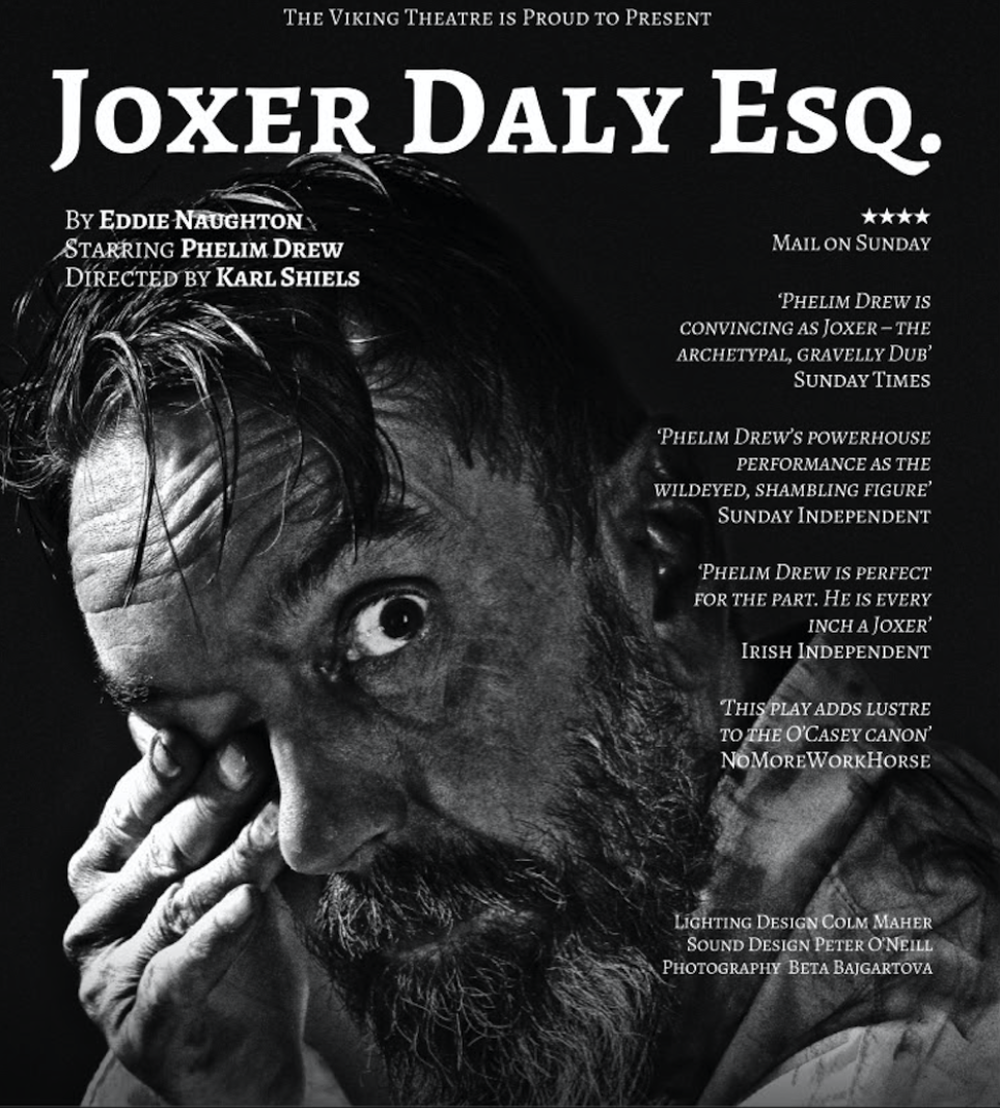 'Joxer Daly Esq.' written by Eddie Naughton, directed by Karl Shiels and starring Phelim Drew will return to the Viking Theatre from Monday 10th February 2020 to Saturday, February 22nd 2020.